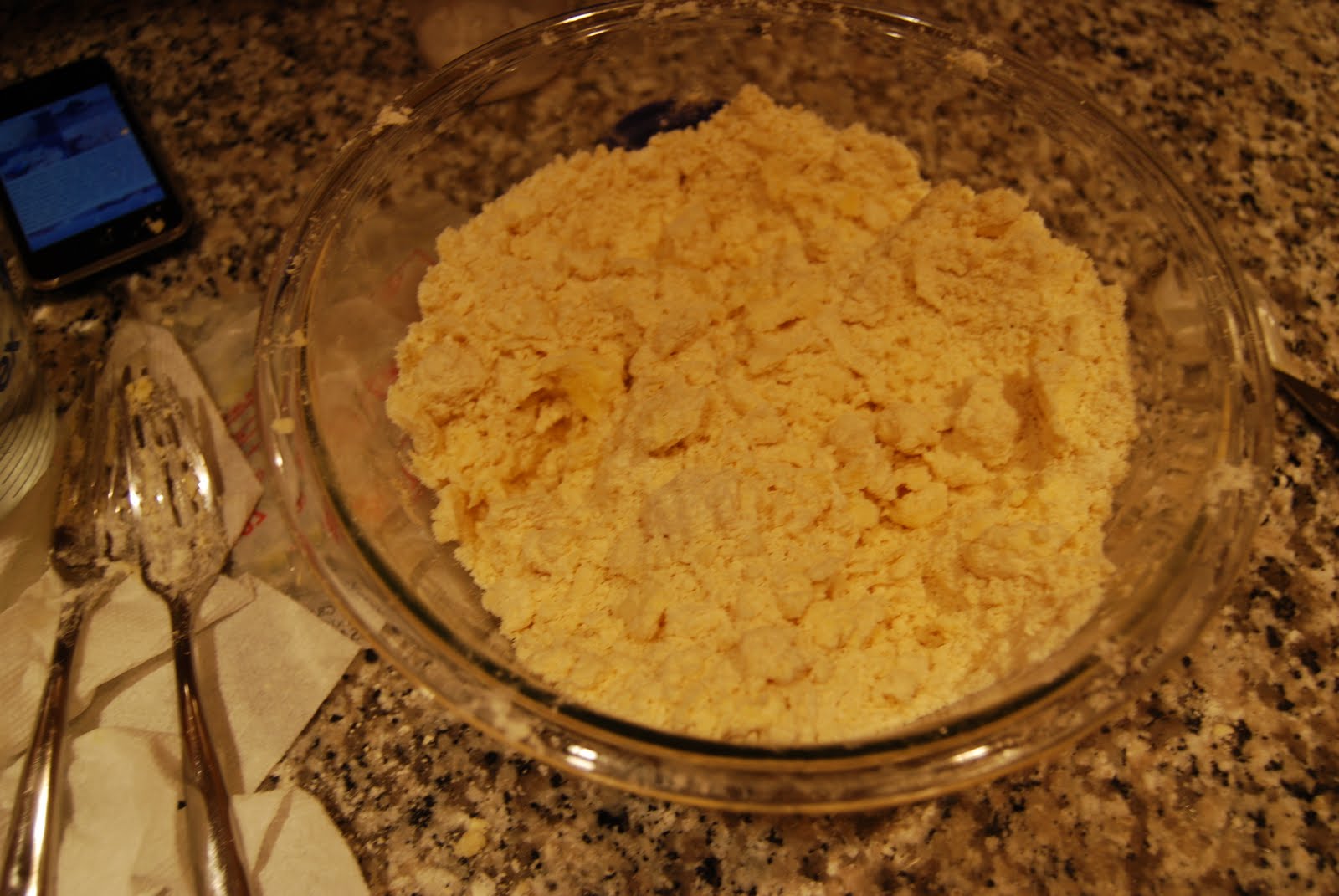 So, you could make this dough with a food processor, but then you can’t really control the texture, or with a pastry cutter, but I can’t find mine, or with two butter knives, or forks…