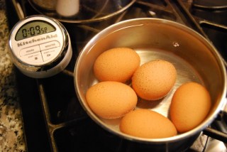 2. As soon as water starts to boil, turn off heat, and let eggs sit for 10 minutes