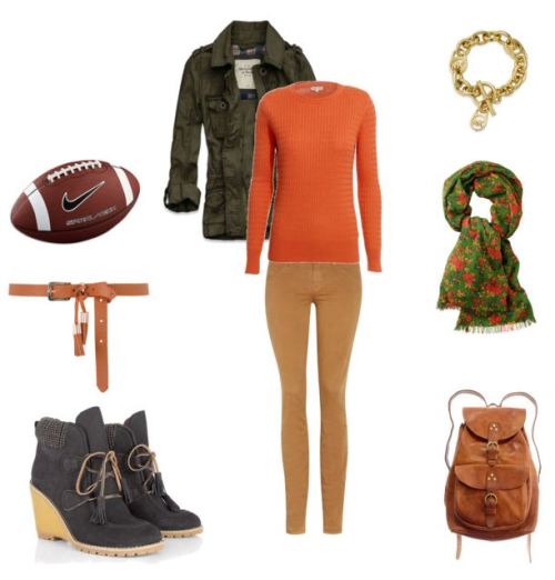I love this look for a number of reasons, the colors, the fall textures and most of all, the functionality.  When you’re at a football game, or outside and standing up and down for 3-4 hours you need to be as comfortable as you are cute.