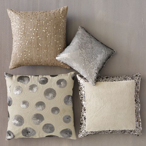 I love the texture on these pillows.  The sparkle is a luxe touch to the natural linen and canvas bases.  How fun would these be on our couch?  (hint, hint!)