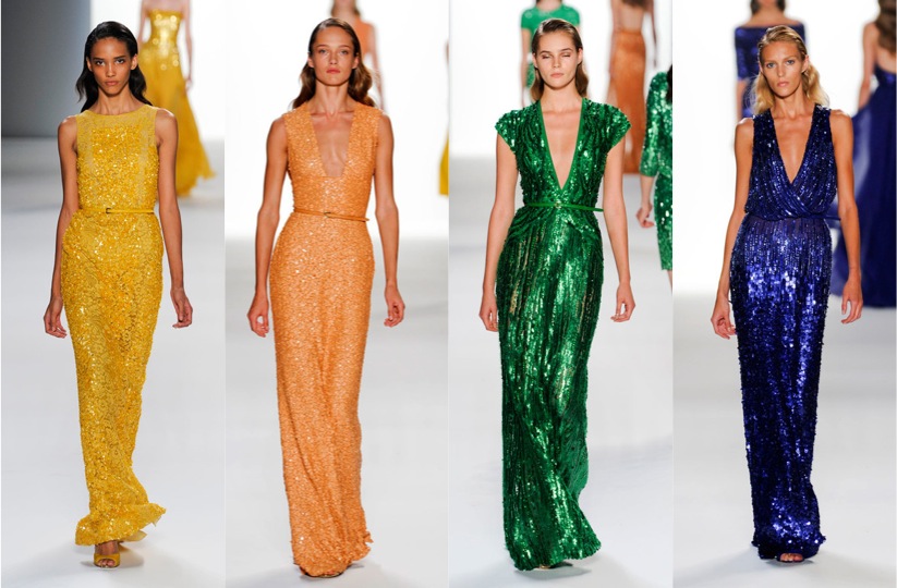 In the last show of Spring 2012 Paris Fashion Week, Elie Saab sent models down the runway in every color under the rainbow.  In the evening wear dresses and gowns they wore vibrant jewel tones.