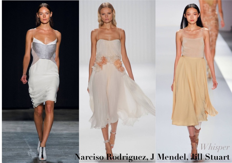 A Whisper: Spring’s sweetest dresses, like the season, seem to come in like a lion. This trend features delicate fabrics hanging perilously from delicate straps in a delicate neutral palette. One strong breeze and this whisp of a dress is whisked away.