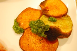 | Sweet Potato Chips and Spicy Arugula Pesto |