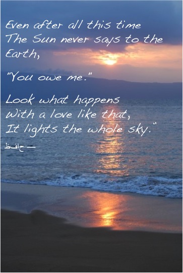 This summer two dear friends, Jake and Enrica, got married.  Printed in their wedding program was this sweet little verse from Hafiz.  It warmed my heart then and still does now.