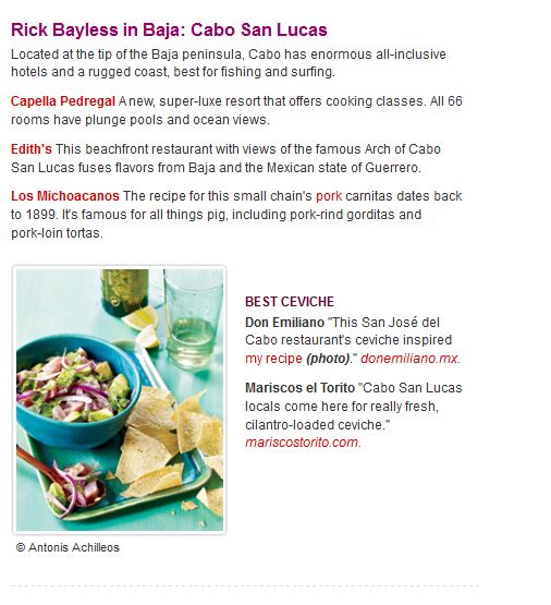 Before we went to Cabo I did my research, I searched all the travel sites, food sites and blogs, and then I was given the gift of Rick Bayless’ guide to the Baja Peninsula in Food and Wine.  Thank you!  Bayless is the expert, in my mind, for all things Mexican and so his suggestions rose to the top of our list.