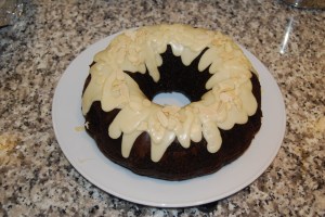 Chocolate Bundt Cake with Vanilla Frosting