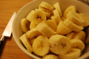 Cut the bananas up into 1/2 inch slices and throw them in the freezer for at least 2 – hours. I recently froze mine for 24 hours, and that was fine too. The more frozen the better.