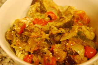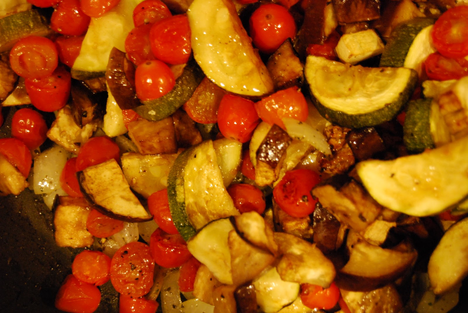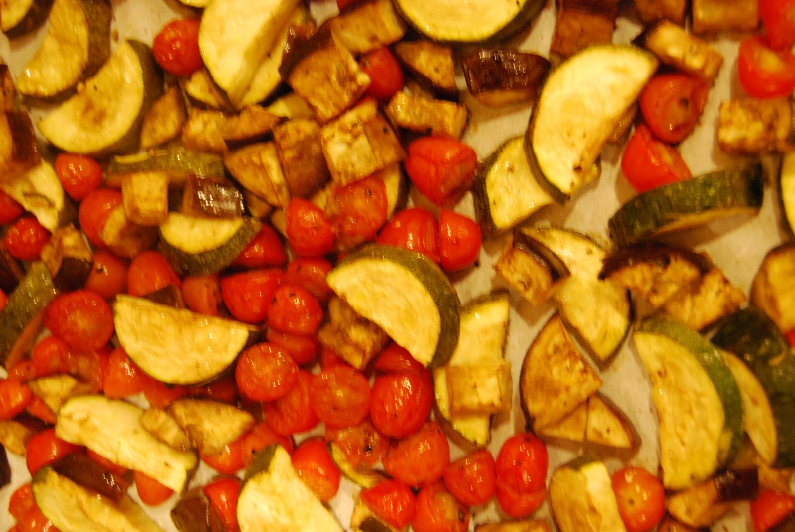 When plating this healthy and quick to make dinner give the vegetables one more quick drizzle of olive oil and a sprinkle of red pepper and cheese.