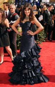 Maria Menounos dress feels like a poor man’s Sandra Bullock’s Marchesa.  Lauren Graham is a beautiful woman, this dress does nothing for her and is more matronly than it needs to be.  January Jones reminds me of Anne Hathaway when she was everyone’s fashion muse, edgy and overdone, it is just not believable for me.  Christina Hendricks in Zac Posen, I wish she would have lost the feathers, it feels like one detail too many.