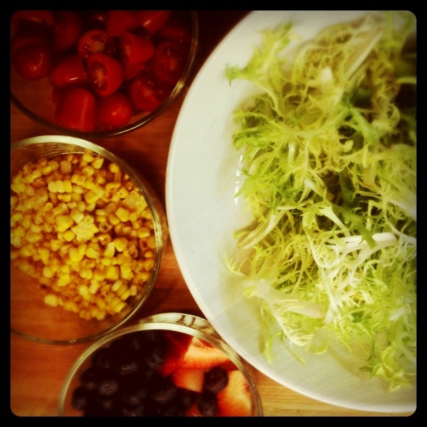 When you’re ready to serve layer the toppings over the frisee and drizzle with the dressing. The bowl with be filled with bold, bright, natural and healthy colors.